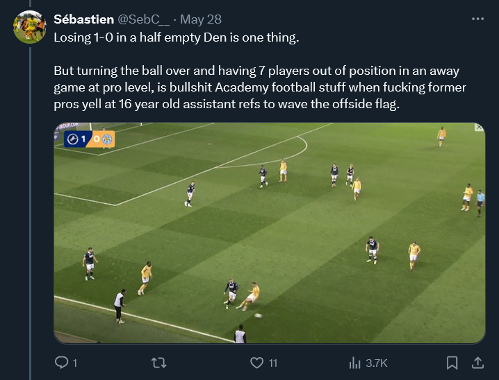 A gameplan executed by people with fancy job titles all obviously doing the same things, apparently convinced they’ve got the god given right to chose the whiteboard tactics, and handpick with the composure of kids in a candyshop new signings briefed as “upgrades”; the most ridiculous being Dewsbury over Gallagher who hasn’t cracked 60 minutes in PL, yet signed for more money.