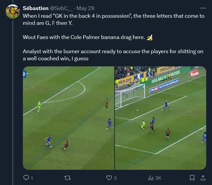 Because that’s what was happening there too, influencers changing their editorial line for a few VIP tickets and keychains ; like Robert Sanchez changes his mind between playing short or boot it away seconds before the iceberg crashes (or the striker closing him down). Most people could see through it –