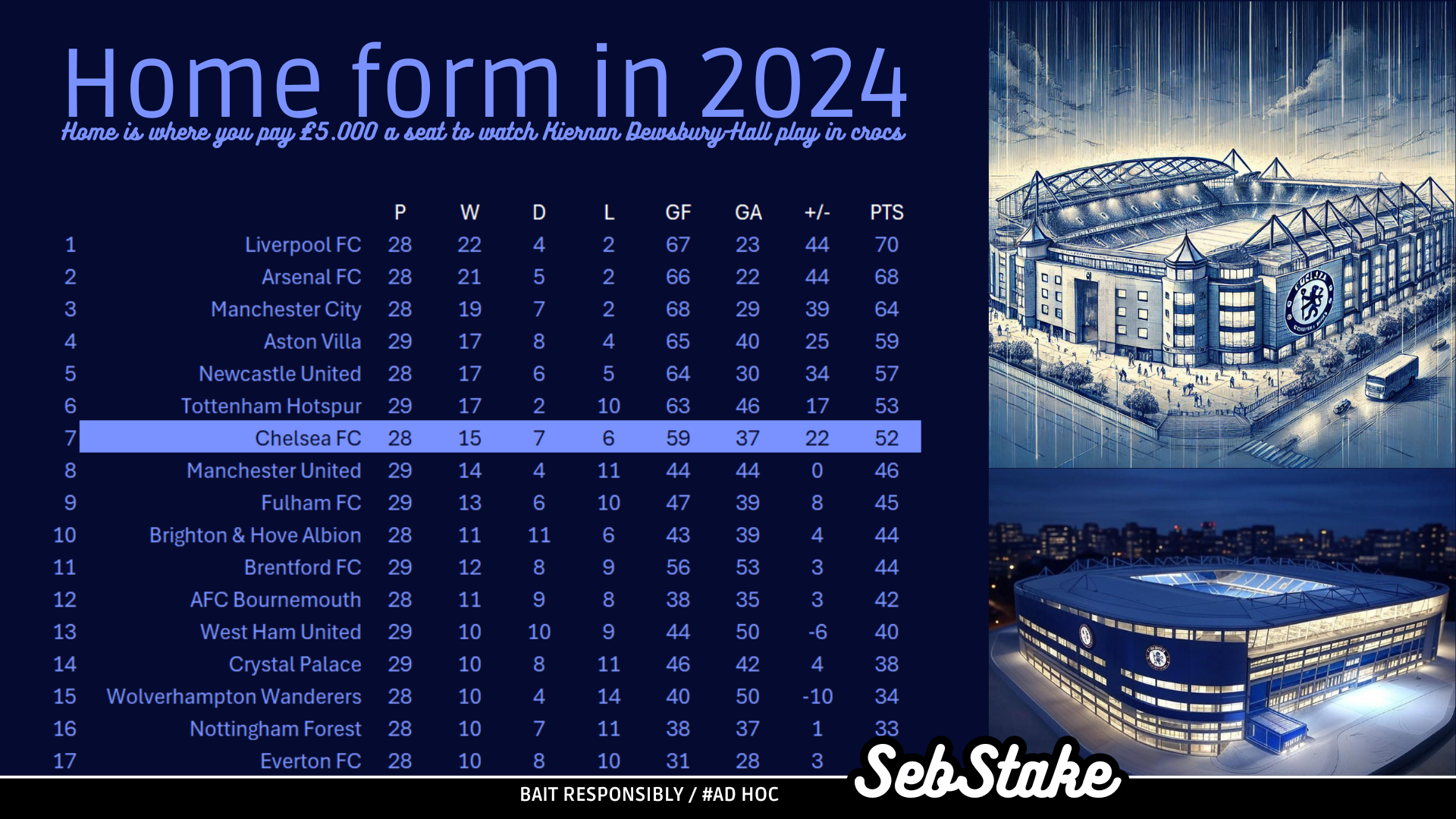Maybe that’ll get better when Chelsea move to Generic Toilet Bowl area.
