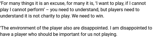 8 senior players on big wages are “frozen out” with the club having almost used the entire legit or non legit playbook to try to force them out. “Technical decisions” carry the weight of the bullshit that should be called out by Player Unions; especially when two goalkeepers find their way on the bench.