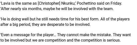 Lavia injured himself twice, and was forced into the lineups by the backoffice to get a minute sample necessary to force Gallagher out in January. Got a upper thigh injury, which, like, does not happen in normal time.