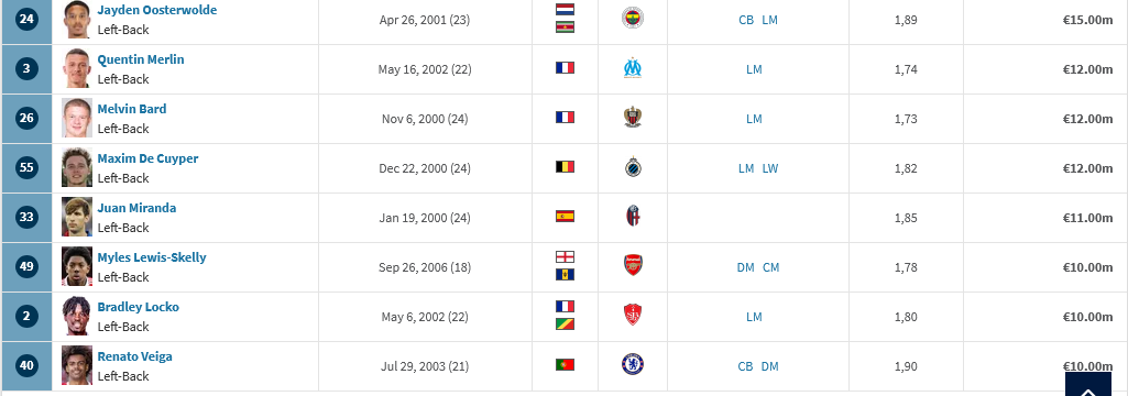 Three players are out of reach financially (Mendes, Davids and Baldé), some are between CB and left back.