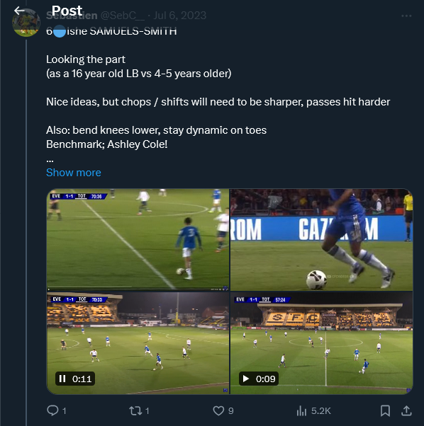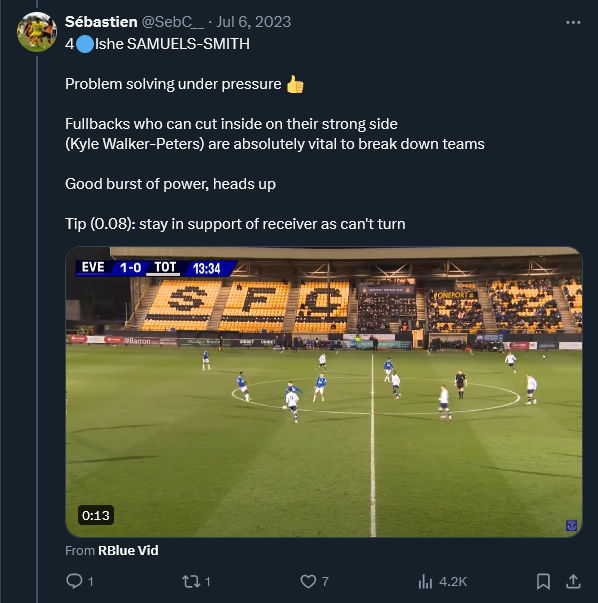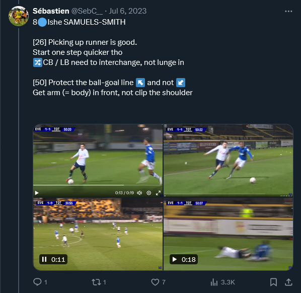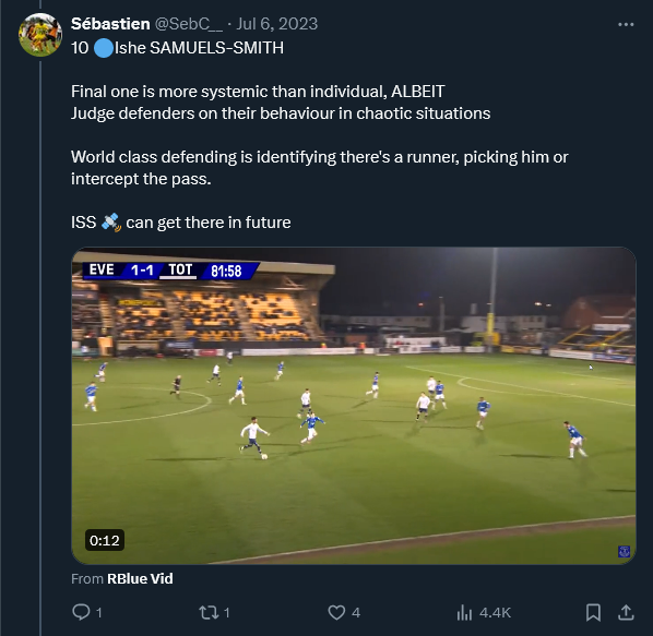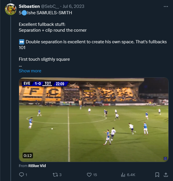 Samuels-Smith actually does all things you expect from a defender, and fullback. Plays CB/LB, with the fundamentals that sometimes go missing: heading, clearing, tackling.