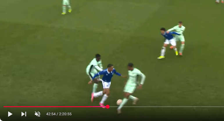 There’s a question about translating his game at senior level, where players who are dominant in PL2 (the small pond) get a chance in PL (the big pond) and immediately become “the small full back to attack at the far post” or on diagonals