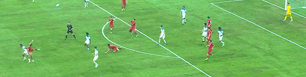 Another efficiency of substance over style. Low volley that connects quickly and keeps danger out, to turn a defensive lose ball recovery into something the team can build on.
