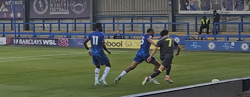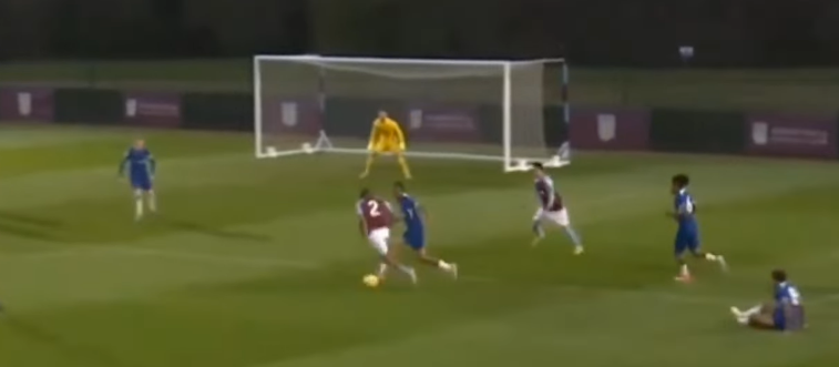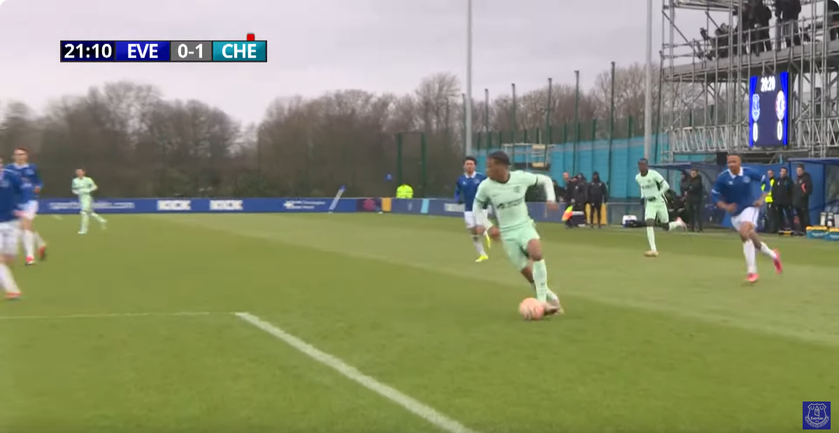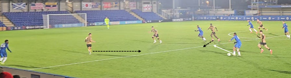Chelsea 2v3 on the wing, but Mheuka pins the CB, therefore there’s space in the wide area of the box