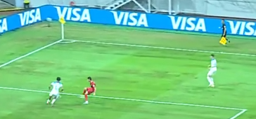 Carry one way, see far side, ping a diagonal. Lots to like here even if the trajectory could be a bit lower, more with the laces (between two players)