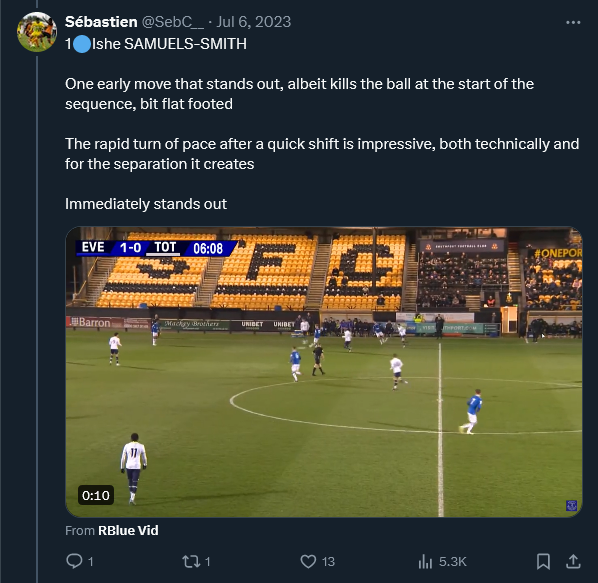 Ishe Samuels Smith is the one Chelsea signed via their renowned academy director Neil Bath (the Adrian Newey of Academy football) and Jim Fraser, Head of Academy recruitment (the equivalent to Manchester City’s Joe Shields ; a few FA Youth Cups and Youth League apart, about a dozen in the same decade working on the same London talent hotbed).