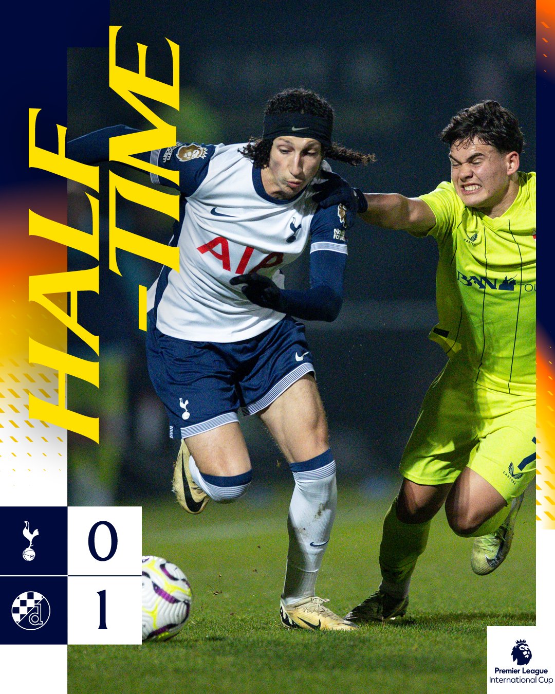 Goals: Spurs – Oliver Irow 47, 55 (pen); Dinamo Zagreb – McKnight (OG) 45+1.