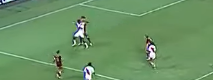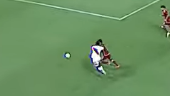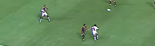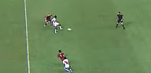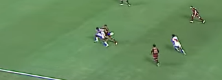 Outstanding Duran face gimmick, after flooring two defenders trying to get the ball off him before half time.