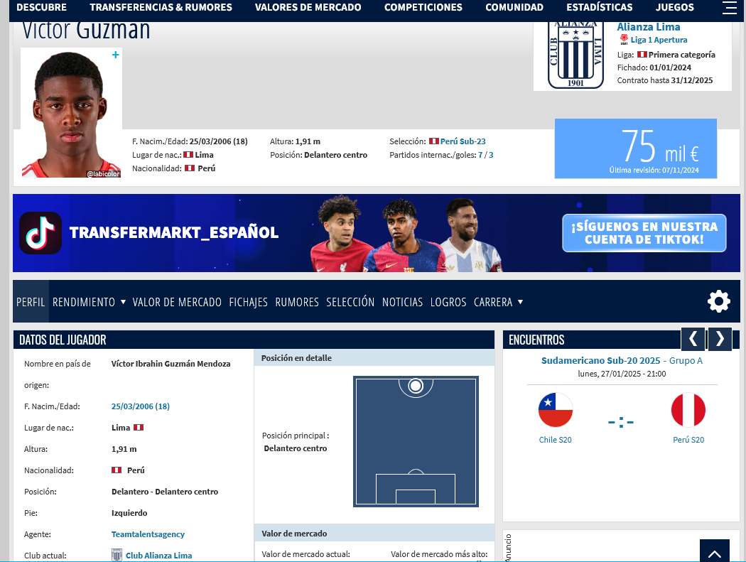 Peru U20’s striker at the CONMEBOL SUB20 2025