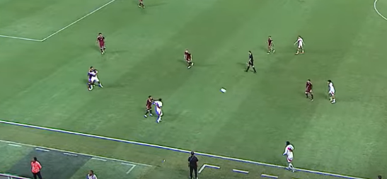 JG sees the fullback hesitant to step out (he shouldn’t), immediately attacks the space