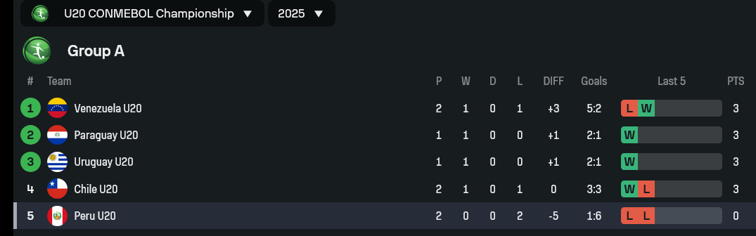 With two defeats in two, Peru look set to crash out from the CONMEBOL SUB20 2025