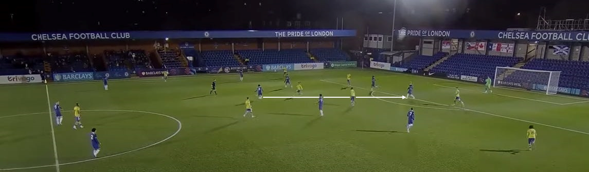 When it comes to weight of passes, Reiss Russell Denny is one of the best I’ve seen in recent seasons at academy level, for connecting in the path of forwards running into space