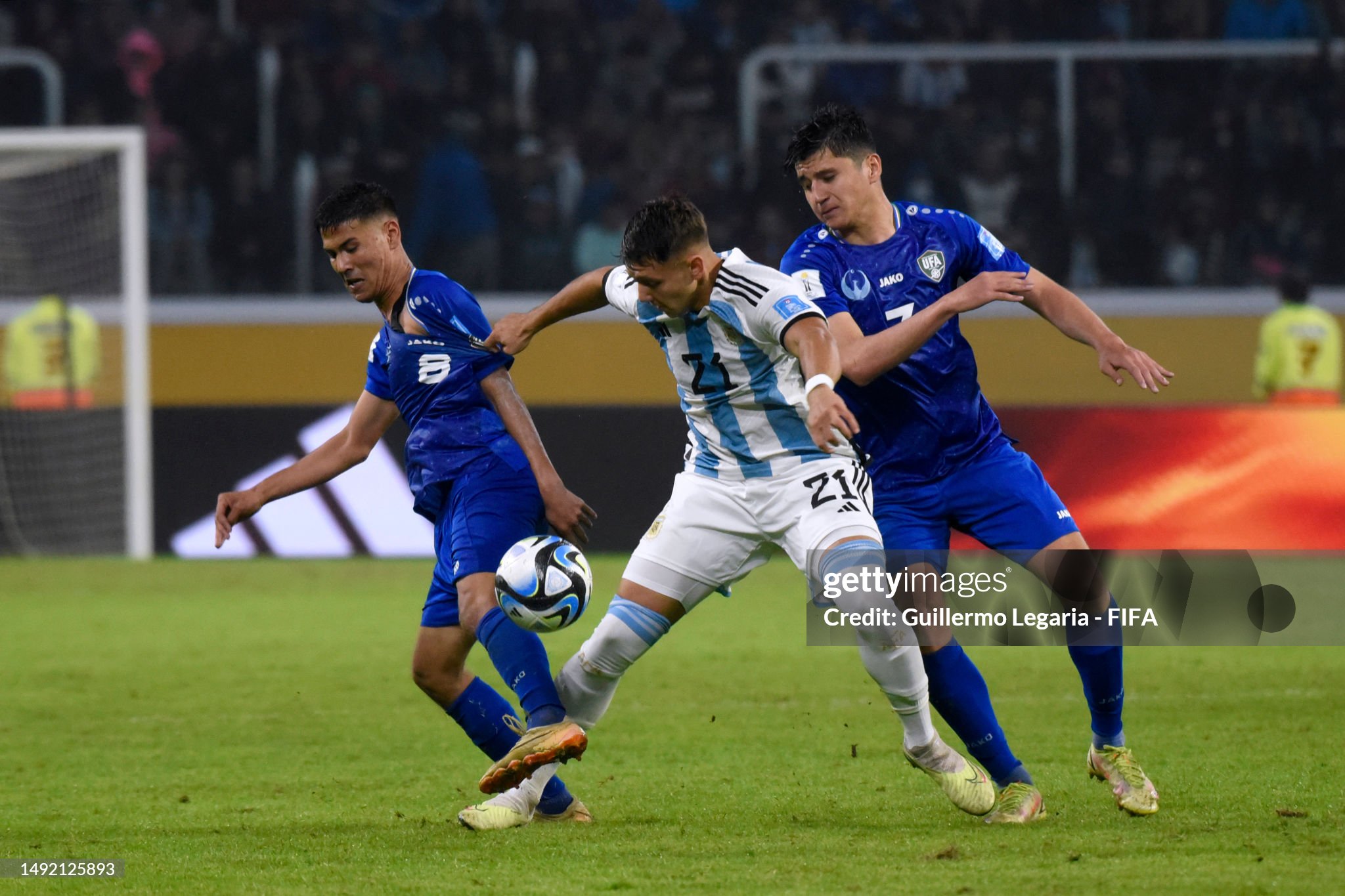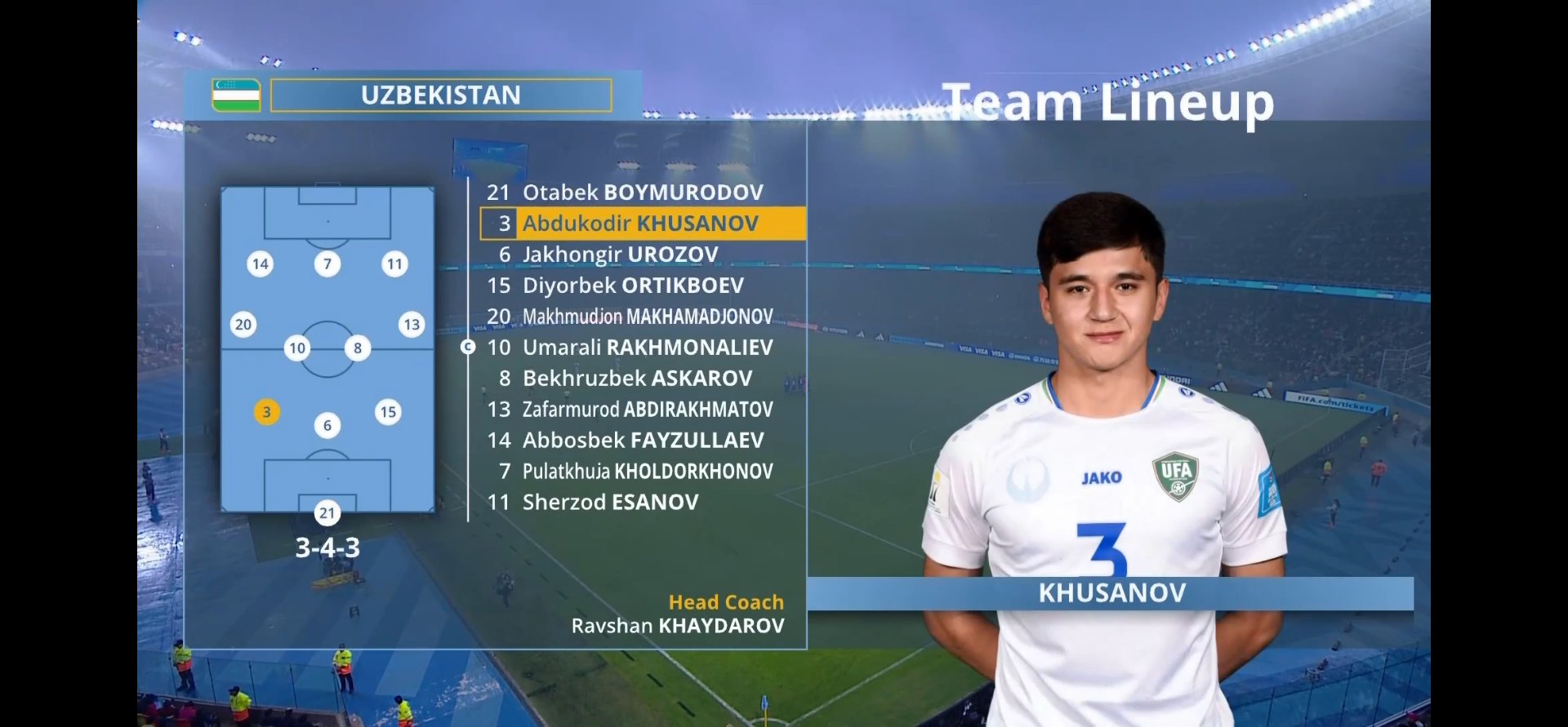 Uzbekistan was playing a bold 343, with good combinations and almost spoiled the party for Argentina hosting the U20 World Cup. Abdukodir Khusanov (3) was marked as a side central defender, he actually played in the middle of the back 3, that’s him jumping before kick-off.