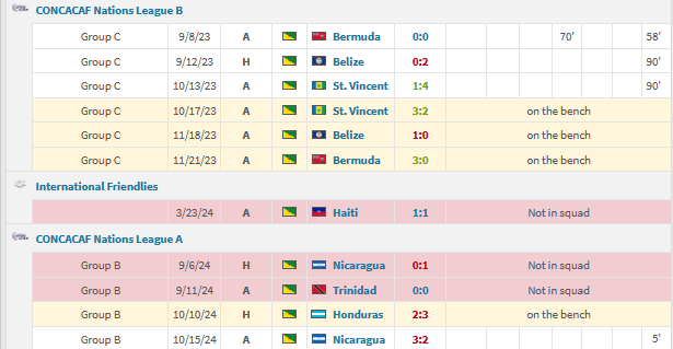 Played gour games in the CONCACAF Nation League